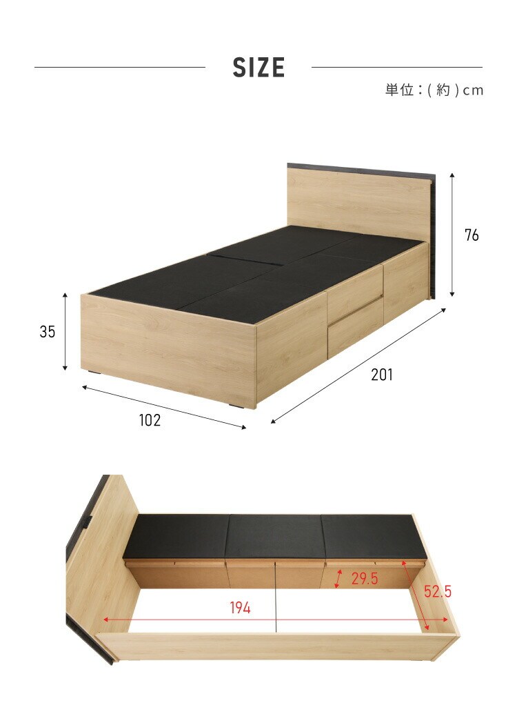 幅102×奥行201×高さ76(床板面高さ35)cm