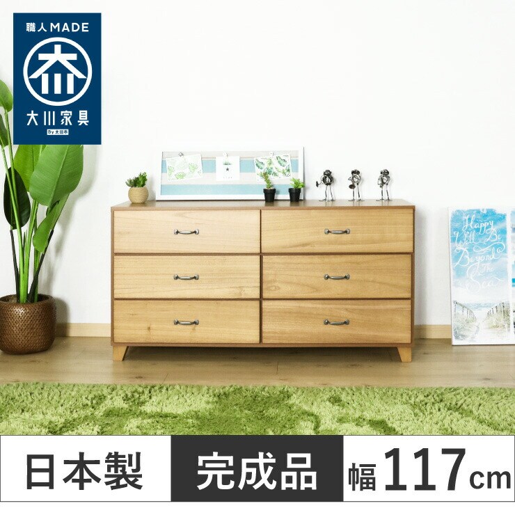 ローチェスト 幅117cm 高さ59cm 【国産 大川家具 完成品】 無垢材 収納 タンス 桐材 日本製 木製 衣類 【送料無料】