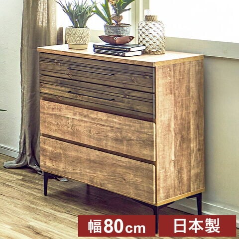 ローチェスト 幅80cm 木目調 日本製 4段 タンス 完成品 チェスト 衣服収納 洋服収納 北欧 リビング 整理 おしゃれ シンプル 収納ラック【送料無料】