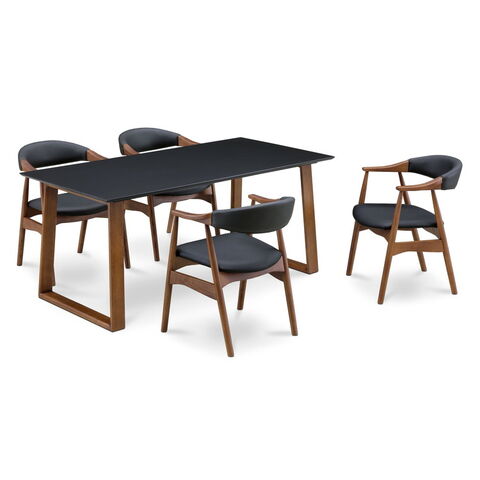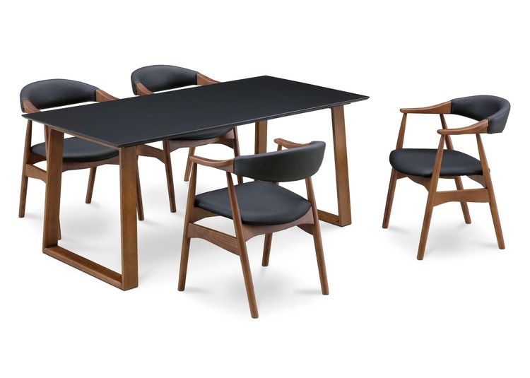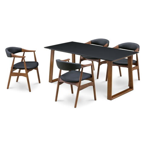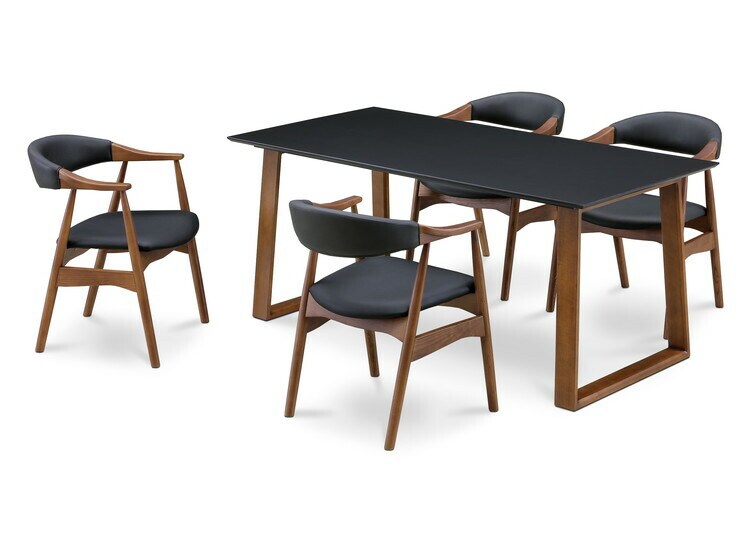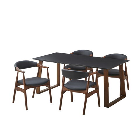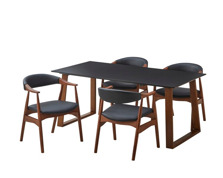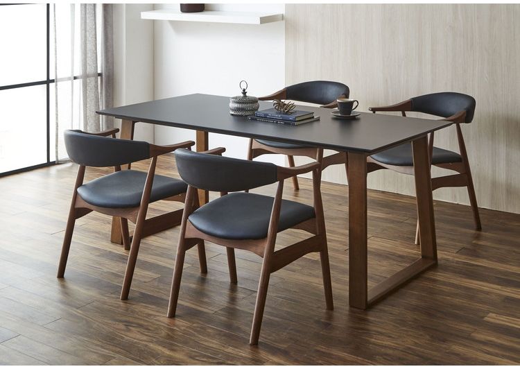 ダイニングテーブルセット 天然木 ダイニング5点セット 無垢集成材 ウォールナット 肘付き ヒジツキ 肘 4人掛け 160×80 スクエア脚 肘付 おしゃれ テーブル チェア 4脚【送料無料】