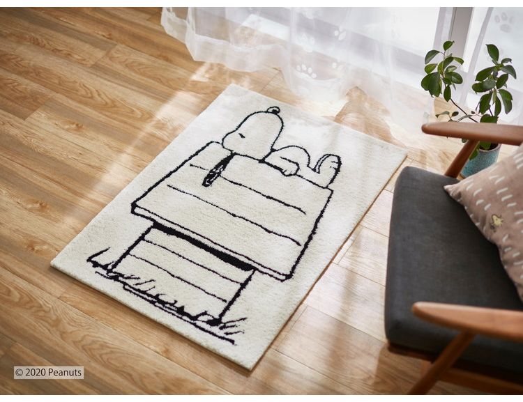 PEANUTS マット 70×100cm スヌーピー レストエリア スヌーピー SNOOPY ピーナッツ 防ダニ 滑り止め キャラクター 北欧 かわいい 可愛い おしゃれ【送料無料】