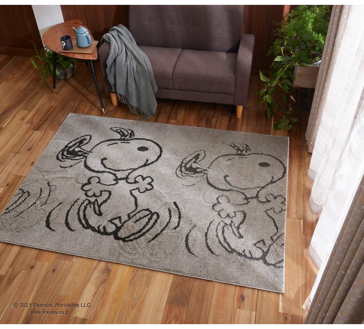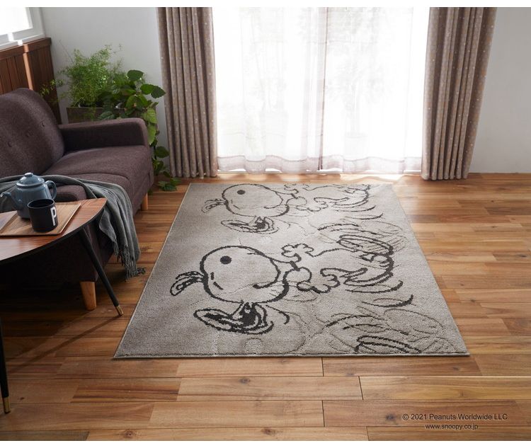 PEANUTS ラグ 130×185cm サパータイムラグ スヌーピー SNOOPY ピーナッツ 防ダニ 床暖房 ホットカーペット対応 キャラクター 北欧 かわいい 可愛い おしゃれ【送料無料】