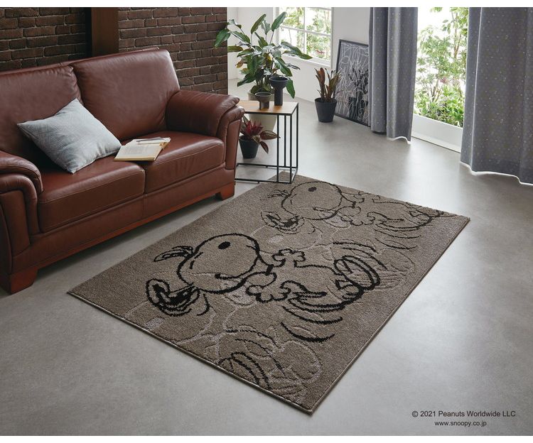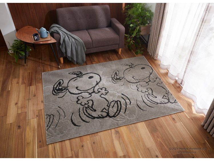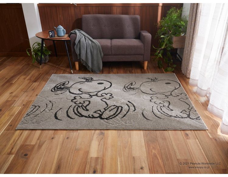 PEANUTS ラグ 185×185cm サパータイムラグ スヌーピー SNOOPY ピーナッツ 防ダニ 床暖房 ホットカーペット対応 キャラクター 北欧 かわいい 可愛い おしゃれ【送料無料】