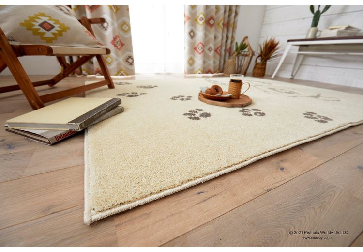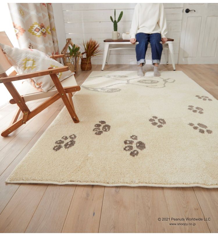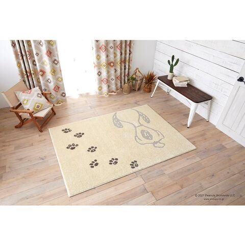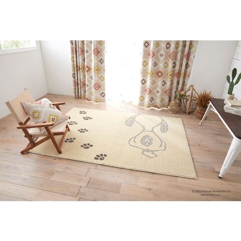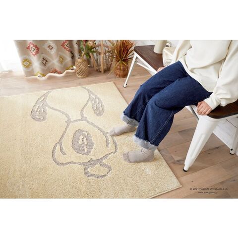 PEANUTS ラグ 185×185cm ボウプリントラグ スヌーピー SNOOPY ピーナッツ 防ダニ 床暖房 ホットカーペット対応 キャラクター 北欧 かわいい 可愛い おしゃれ【送料無料】