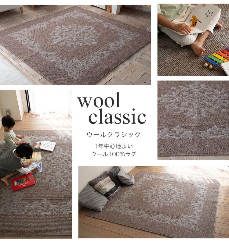 ラグ ウールクラシック 185×185cm カーペット 国産 日本製 ウール ラグマット リビング シンプル エレガント 防ダニ 防音 床暖対応 ホットカーペット対応 遊び毛防止 ブラウン モカ 新生活【送料無料】