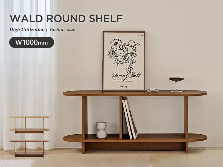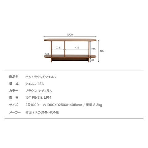 roomnhome バルトラウンドシェルフ ラック 2段 100cm ドレッサー 見せる収納 収納 サイドテーブル メイクスペース オープンラック デザインラック シェルフ スリム ディスプレイラック 本棚【送料無料】