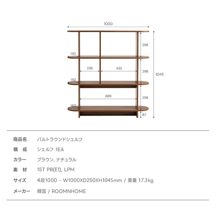 roomnhome バルトラウンドシェルフ ラック 4段 100cm ドレッサー 見せる収納 収納 サイドテーブル メイクスペース オープンラック デザインラック シェルフ スリム ディスプレイラック 本棚【送料無料】