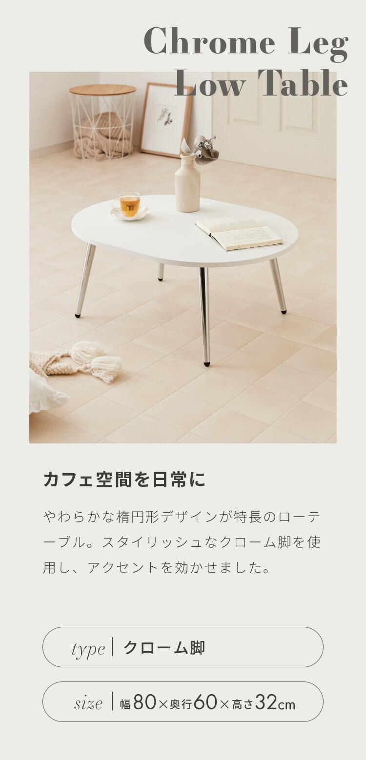 【roomnhome×リコメン堂】ローテーブル 80cm クローム脚 おしゃれ 韓国インテリア 高さ32cm 耐荷重約20kg センターテーブル【限定商品】かわいい シンプル インテリア モダン 北欧 一人暮らし【送料無料】