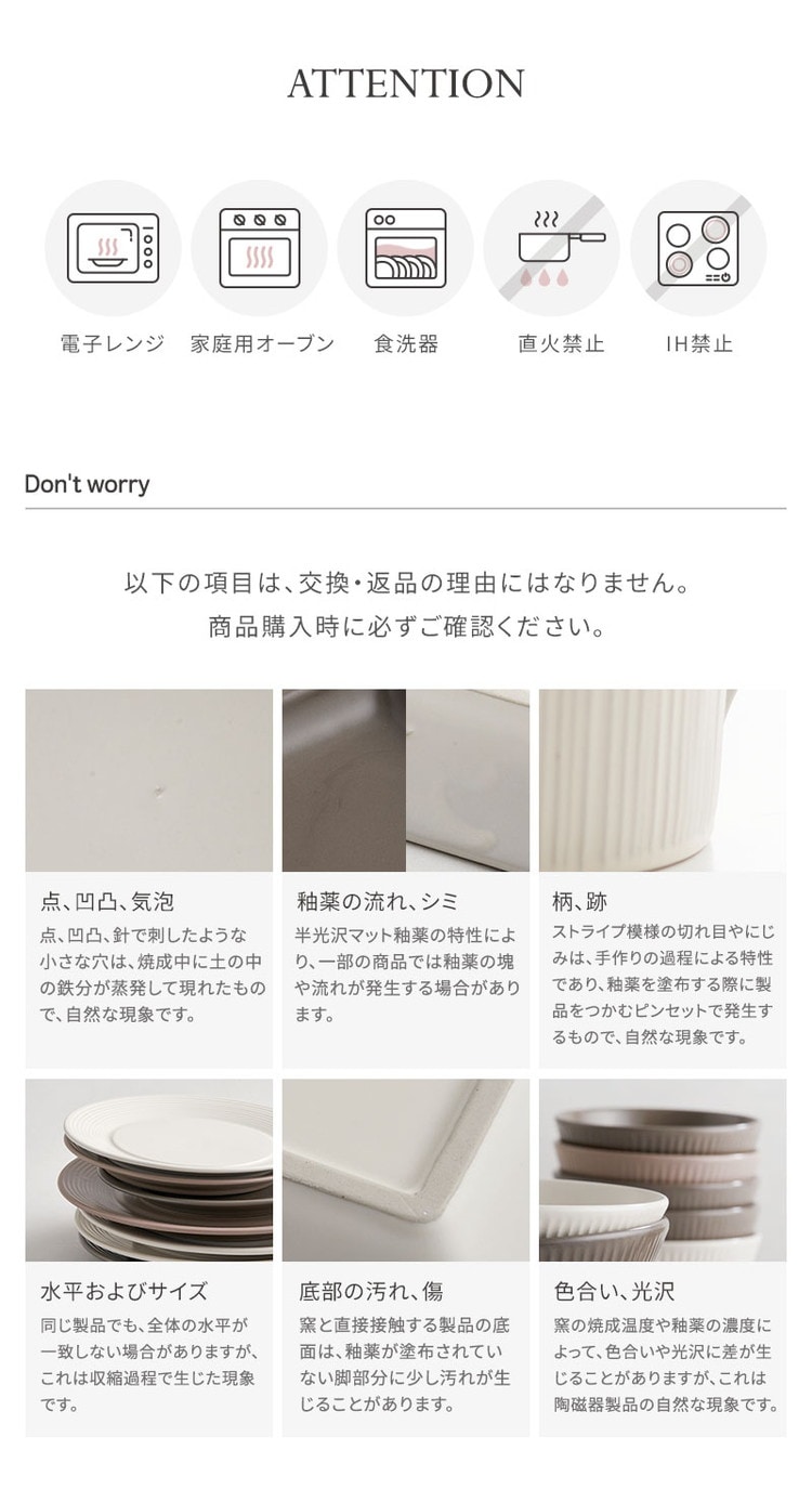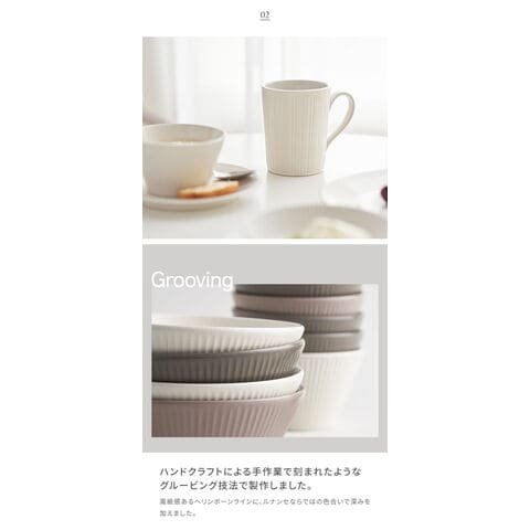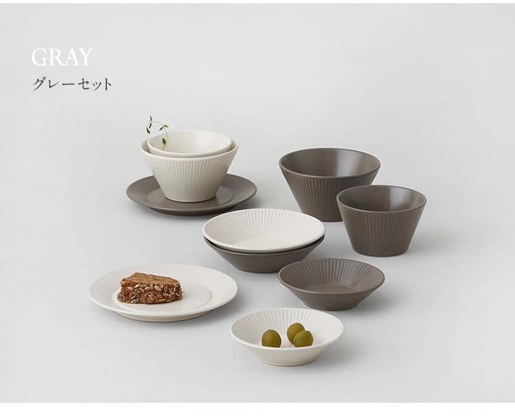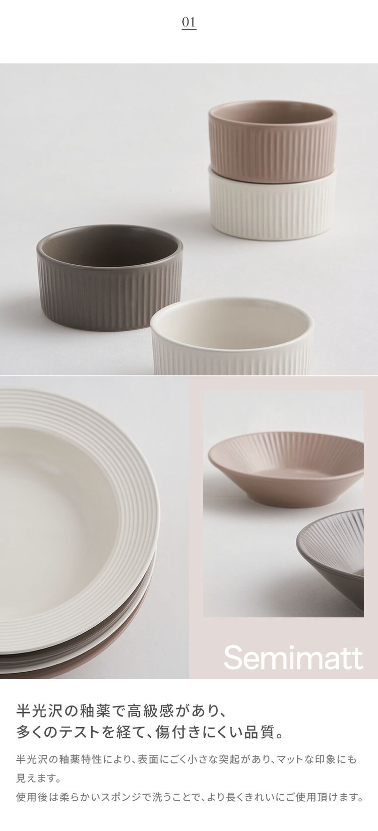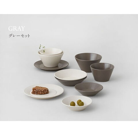 半ツヤ消し釉薬を使用してスクラッチに強く、高級感が感じられます。モダンな色味の食器で、食卓の感覚的な演出ができます。