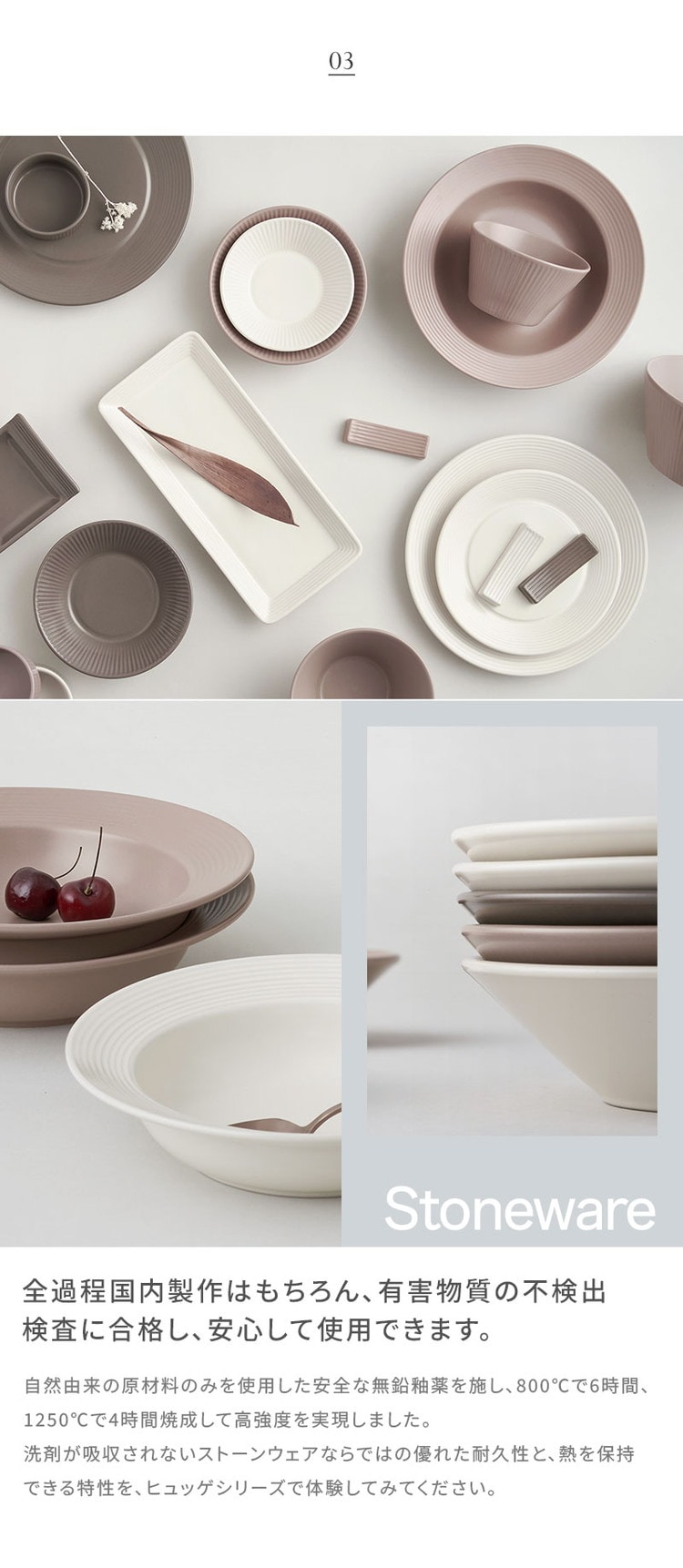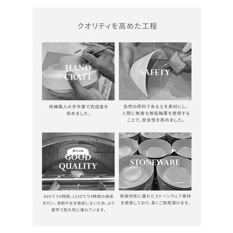 熟練職人の手作業で完成度を高めた食器セットは人体に無害な釉薬とストーンウェアを使用し、安心してお使いいただけます。