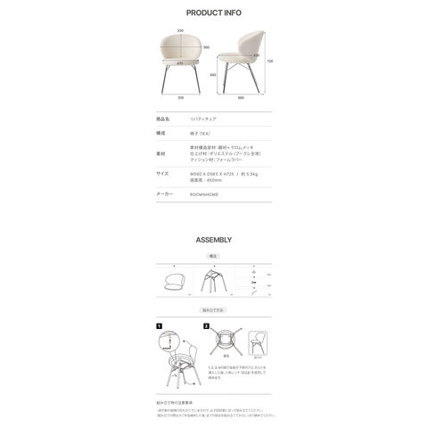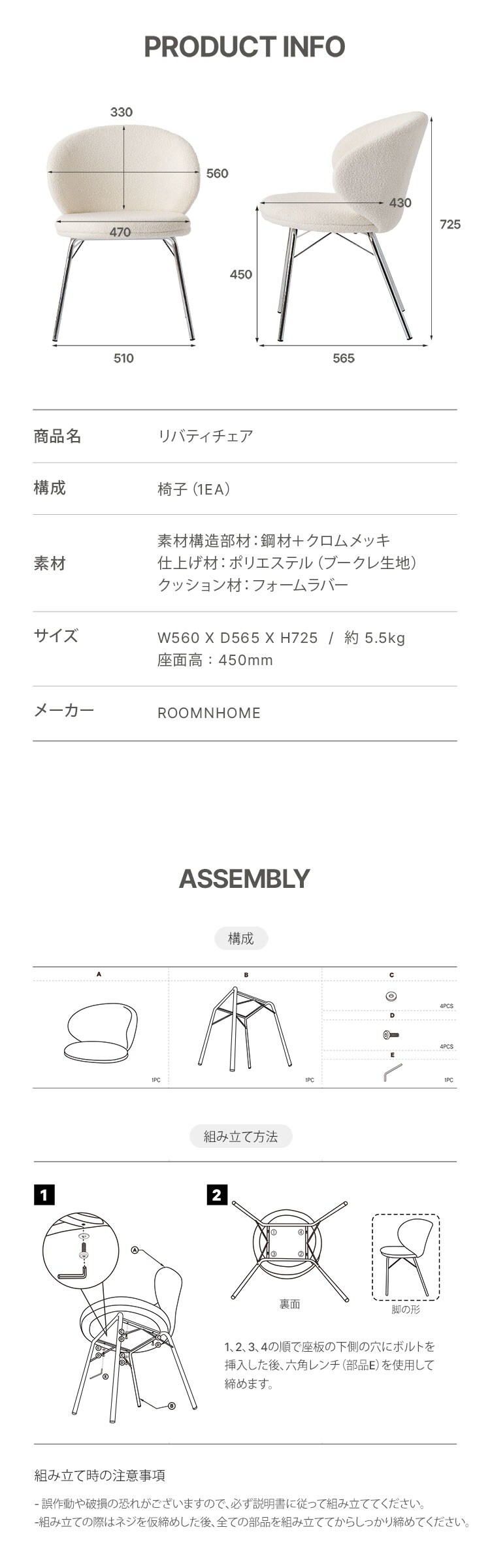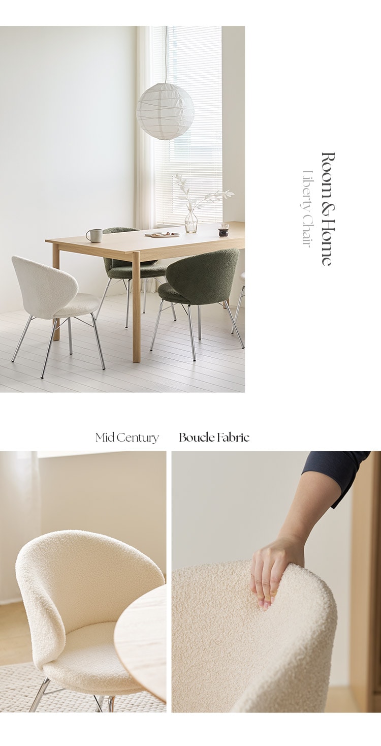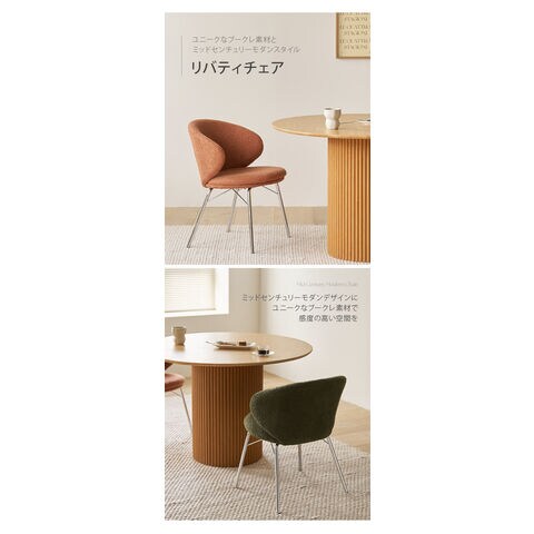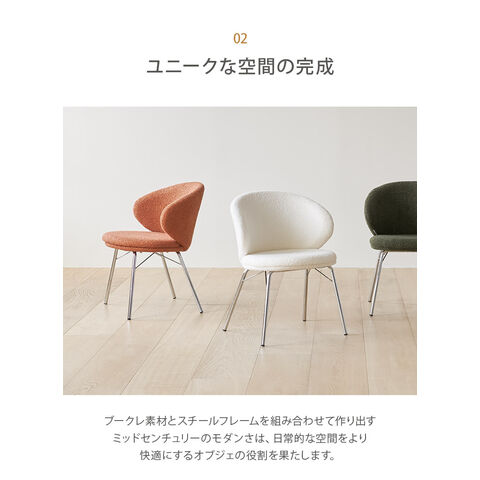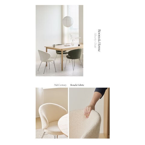 roomnhome リバティチェア 1脚/2脚セット/4脚セット 単品 ダイニングチェア ブークレ おしゃれ 肘付き 椅子 リコメン堂限定 ミッドセンチュリー 韓国インテリア 在宅ワーク キャスターなし イス