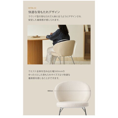 丸みのある背もたれは体を優しく包み込み、安心感のある座り心地を提供します。