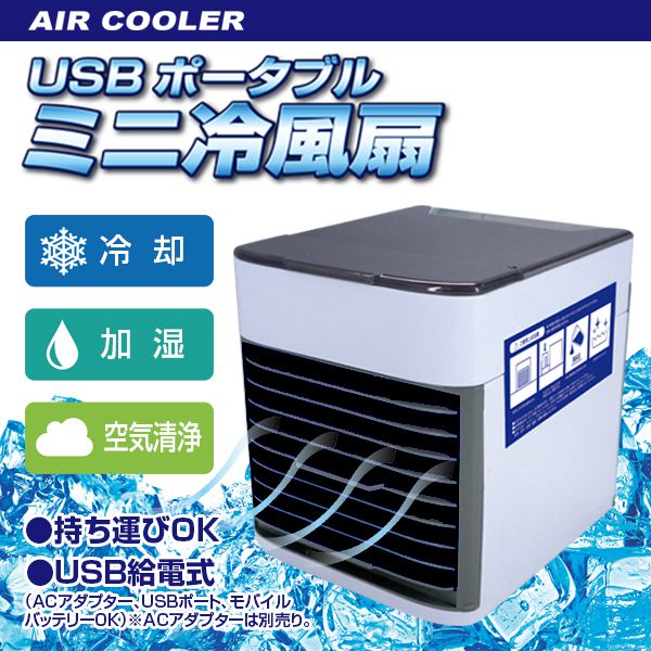 卓上 USB ポータブル ミニ冷風扇 扇風機 冷風 デスク オフィス リビング 小型 持ち運び LED付き【送料無料】