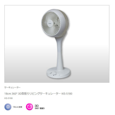 18cm3枚羽根の360°:3D首振りサーキュレーター