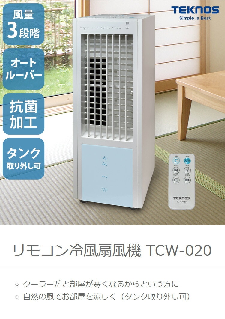 TEKNOS 冷風機 小型 冷風扇風機 静音 おしゃれ 冷風 扇風機 リモコン付き アウトドア コンパクト スリム 送風 リビング キッチン 子供部屋 タイマー 節電 業務用 倉庫 工場 体育館 テクノス TCW-020【送料無料】