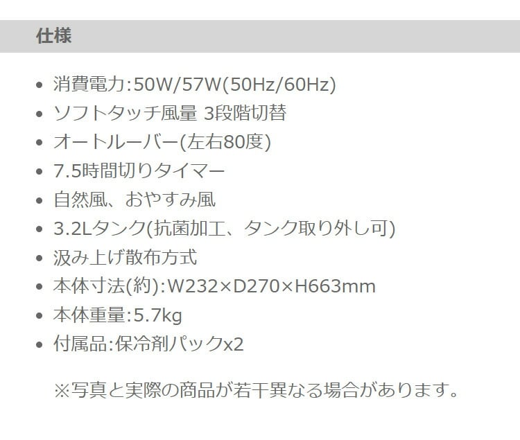 自然の風でお部屋を涼しく(タンク取り外し可)