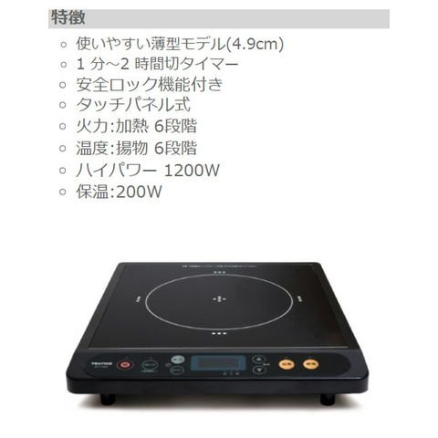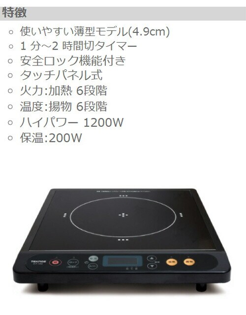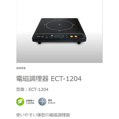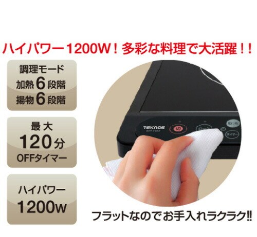 TEKNOS テクノス IHコンロ クッキングヒーター タイマー 電磁調理器 1口 卓上 1200W 薄型 タイマー 保温 ロック機能付き IHヒーター 新生活 一人暮らし 2人暮らし キッチン家電 ECT-1204【送料無料】