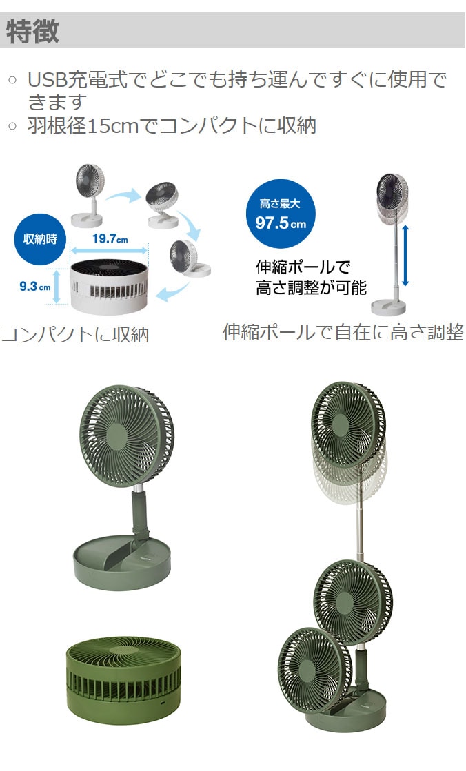 羽根径15cmでもすっきりコンパクトに!