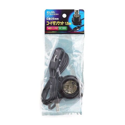 朝日電器 ELPA コード付ソケット KP-M2615H(BK)
