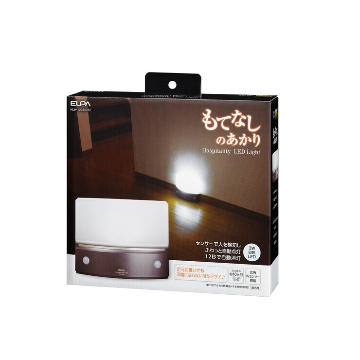 朝日電器 ELPA エルパ センサーライト もてなしライト 乾電池式 薄型デザイン 白色LED 広角Wセンサー HLH-1203(DB)【送料無料】