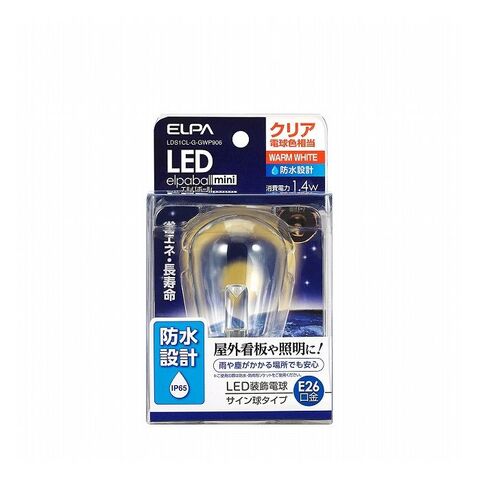 LED電球サイン形防水E26CL色 LDS1CL-G-GWP906 エルパ ELPA 朝日電器