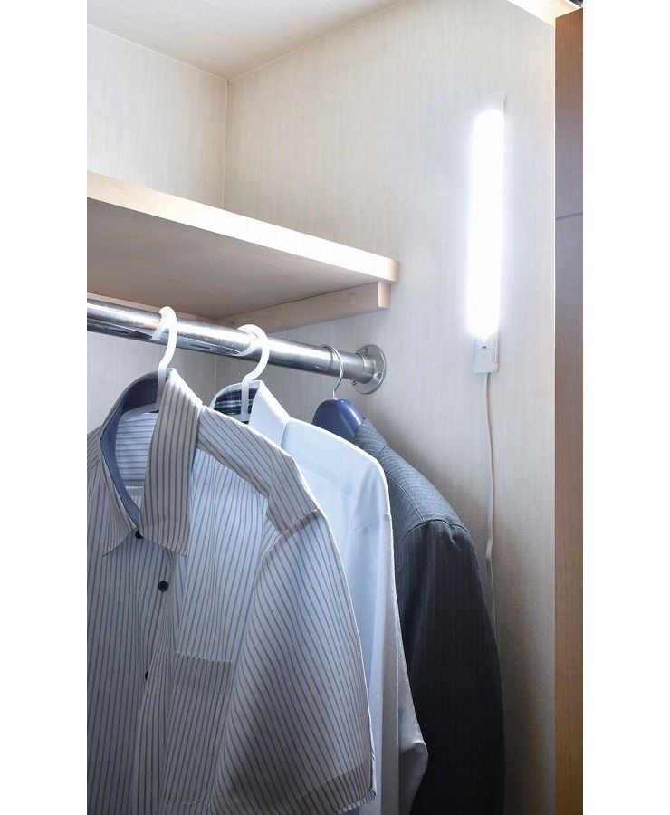 ■付属品:ACアダプター 1個、マグネットホルダー 2個、木ねじ 大(φ2.8×19mm) 2本 小(φ2.8×9.5mm) 2本、スリーブ(φ6×28mm) 2本、両面テープ(7.5cm) 2枚、コードステッカー 3個、エンドキャップ 1個●暗い場所で人に反応して自動で点灯し、約15秒後に自動で消灯します。