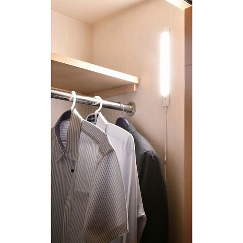 ■付属品:ACアダプター 1個、マグネットホルダー 2個、木ねじ 大(φ2.8×19mm) 2本 小(φ2.8×9.5mm) 2本、スリーブ(φ6×28mm) 2本、両面テープ(7.5cm) 2枚、コードステッカー 3個、エンドキャップ 1個●暗い場所で人に反応して自動で点灯し、約15秒後に自動で消灯します。