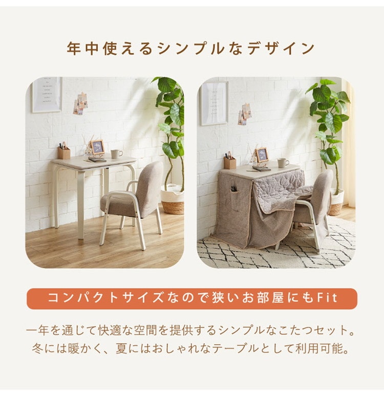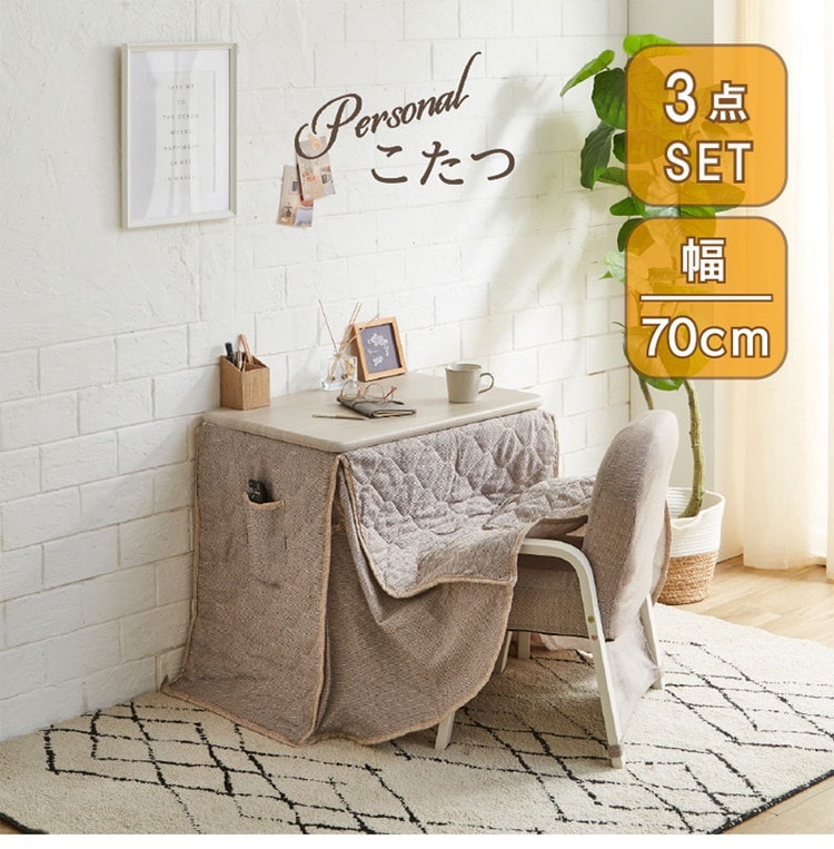 デスク 幅70cm こたつテーブル 3点セット 椅子 布団付き 1人用 コンパクト オールシーズン テーブル リビング ワンルーム 一人暮らし 勉強机 暖卓 こたつ 炬燵 暖かい【送料無料】