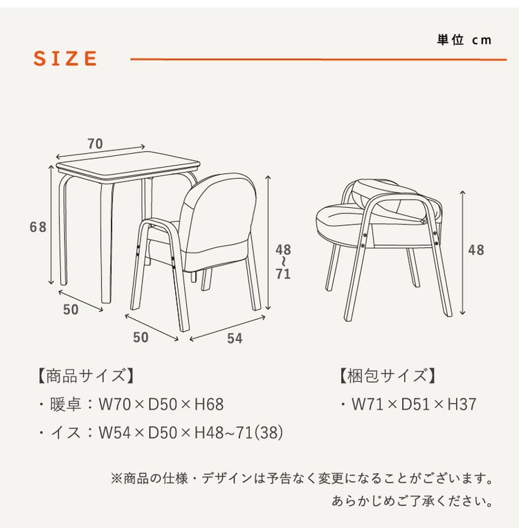 暖卓:幅70×奥行50×高さ68cm