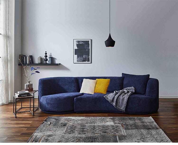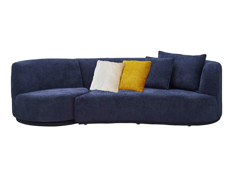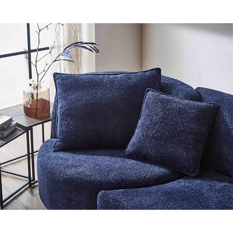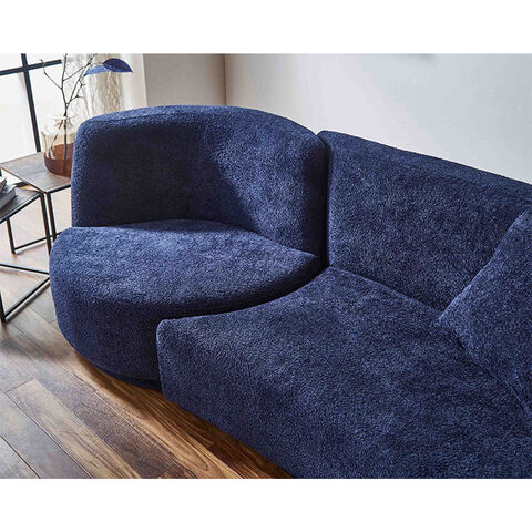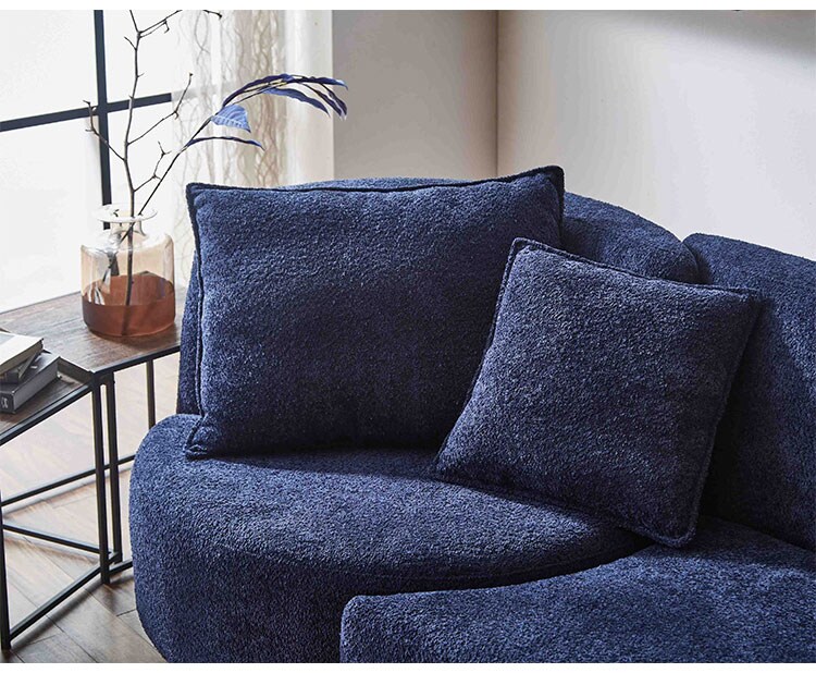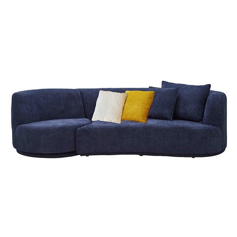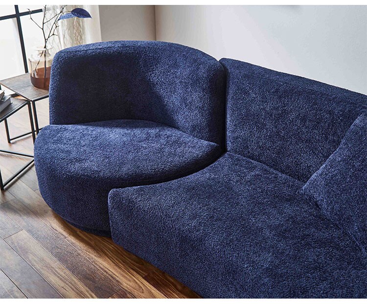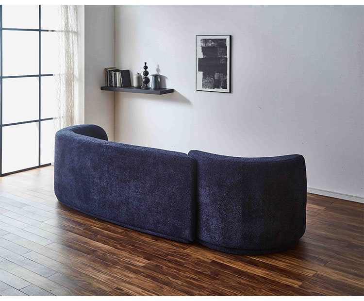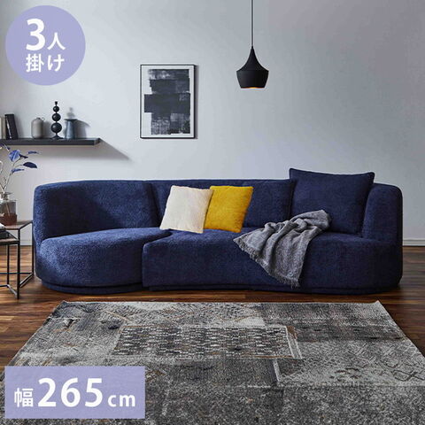 ソファ 3人掛け 幅265cm カウチソファ ブークレ生地 おしゃれ リビング ローソファ リラックスチェア ブルー チェア ウェーブ カーブ【送料無料】