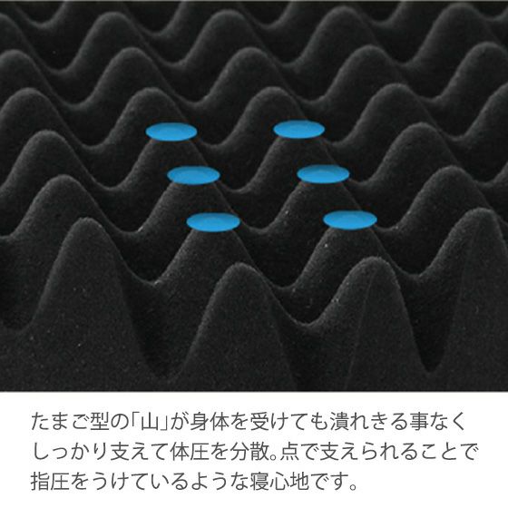 180ニュートンの硬質ウレタンを、たまご型にカットした高反発マットレスです。