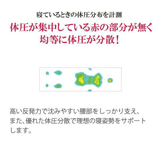 全身をしっかり支えてバランス良く体圧を分散、自然な寝姿勢と寝返りをサポートします。