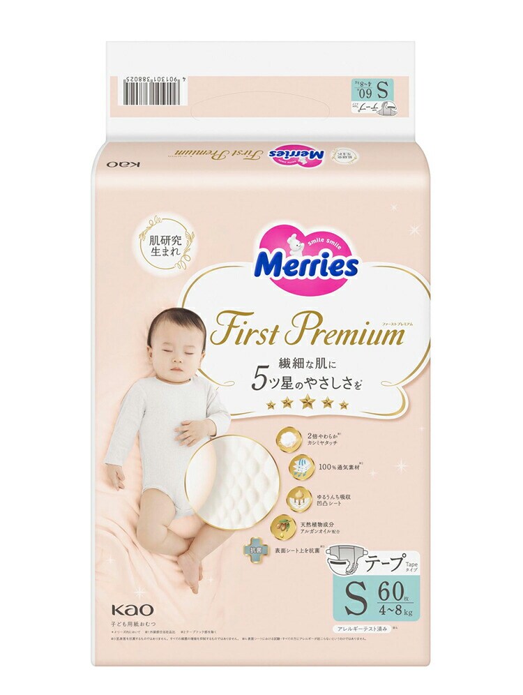 【4個セット】 メリーズ ファーストプレミアム Sサイズ 60枚入り 花王 まとめ買い おむつ 紙パンツ ベビー 赤ちゃん【送料無料】