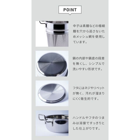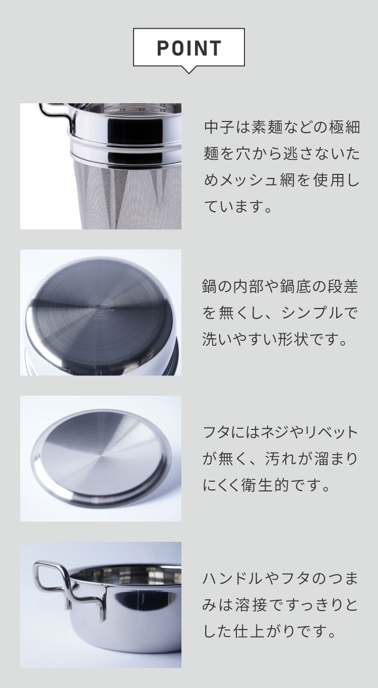 中子はそうめんなどの極細麺を穴から逃がさないメッシュ網。日本の風土にあった料理も得意です。