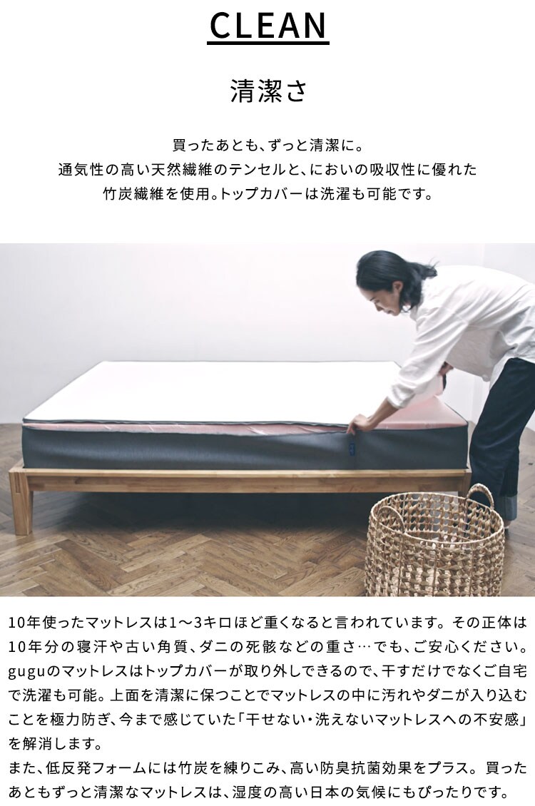 【45日間返品保証付き】 グーグースリープ gugu sleep マットレス セミダブル 日本人の体型に合わせたマットレス 厚み23cm ウレタンマットレス 高反発 低反発 4層構造 竹炭繊維配合 体圧分散 洗える 【送料無料】