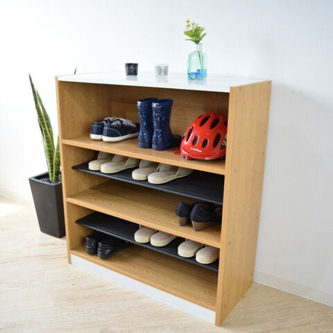 中棚を取り外せばお洒落な木目の収納棚として使用することができ、ショートブーツやお子さまの長靴など高さのあるものも収納することができます。