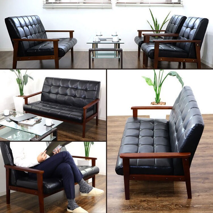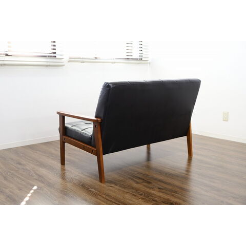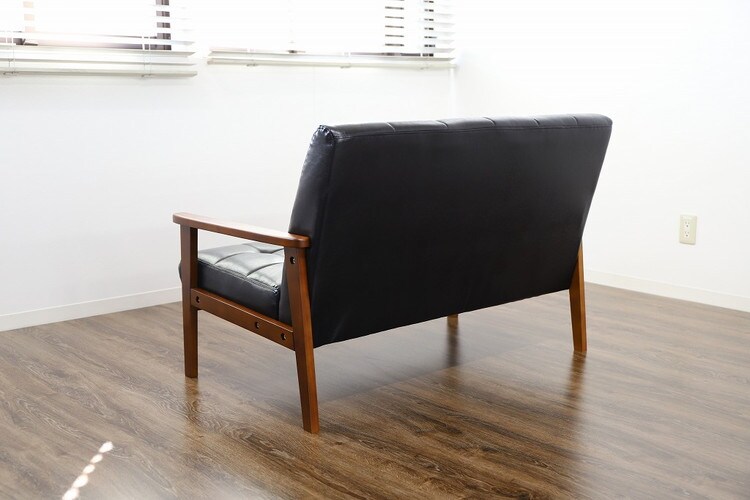 北欧デザインの木製肘を使用した レトロモダンな2人掛けソファです!