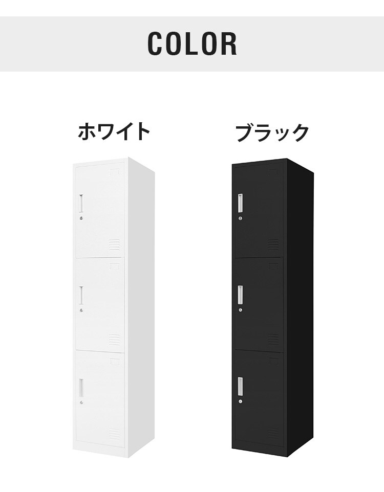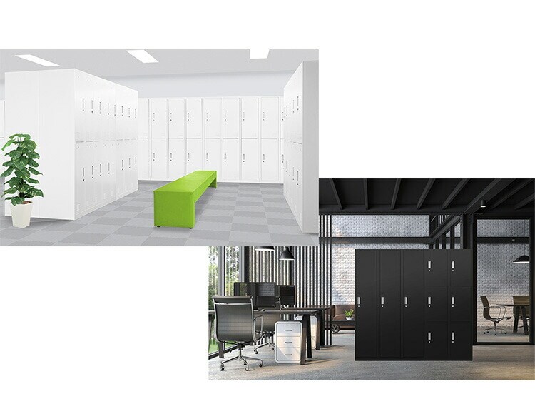 ホワイトは見た目にも美しく、明るく清潔感があり、ブラックはシャープで都会的なロッカールームを演出できます。