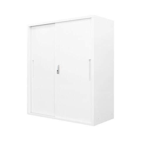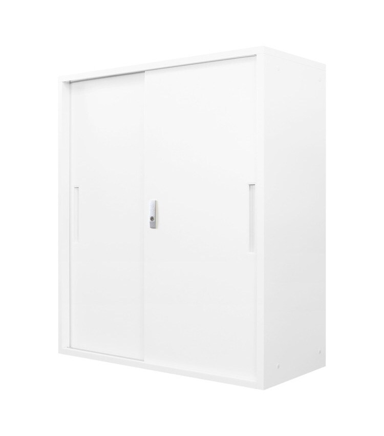 【※法人様限定販売】 引き戸書庫 組み立て品 幅90cm 2.6cmピッチで可動棚 鍵付きラック システム収納庫 スチール書庫 キャビネット 事務所 本棚 シェルフ 収納【送料無料】