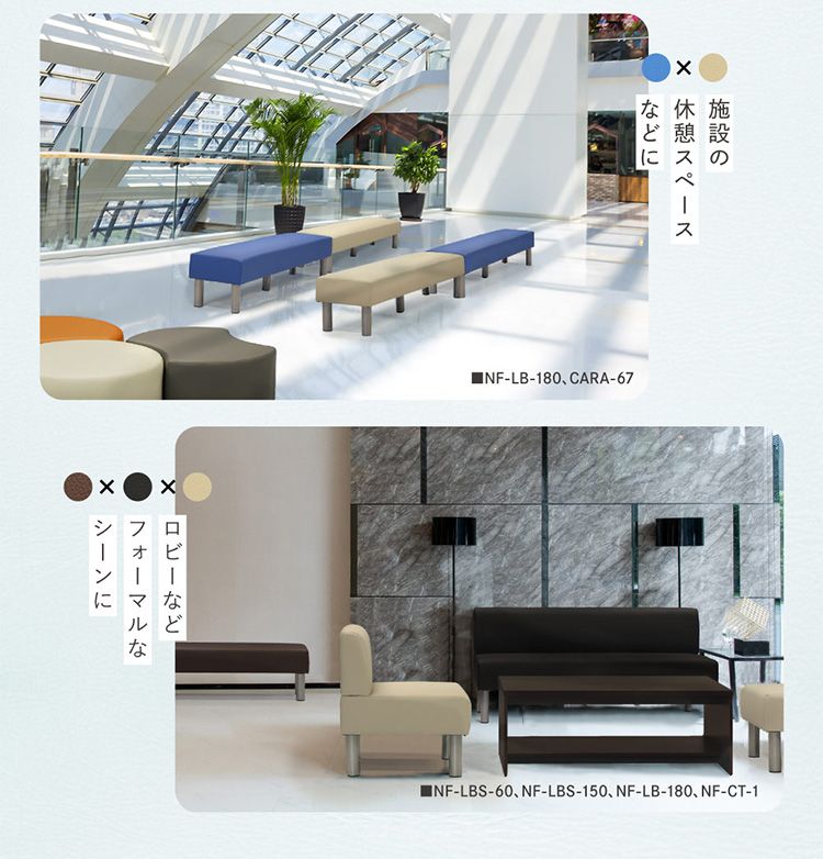 さまざまなシーンに合わせて選べるロビーベンチです。