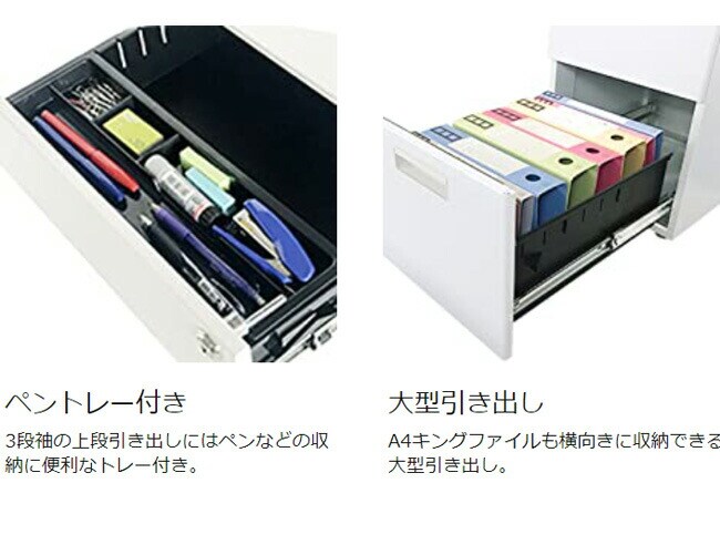 【※法人様限定販売】 完成品 スチールワゴン 3段 サイドワゴン スチール製 キャスター付き 脇机 サイドデスク 収納 収納 引き出し オフィスワゴン デスクワゴン キャビネット チェスト 収納【送料無料】
