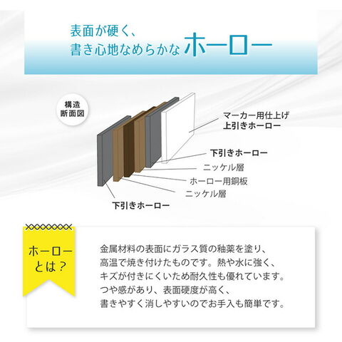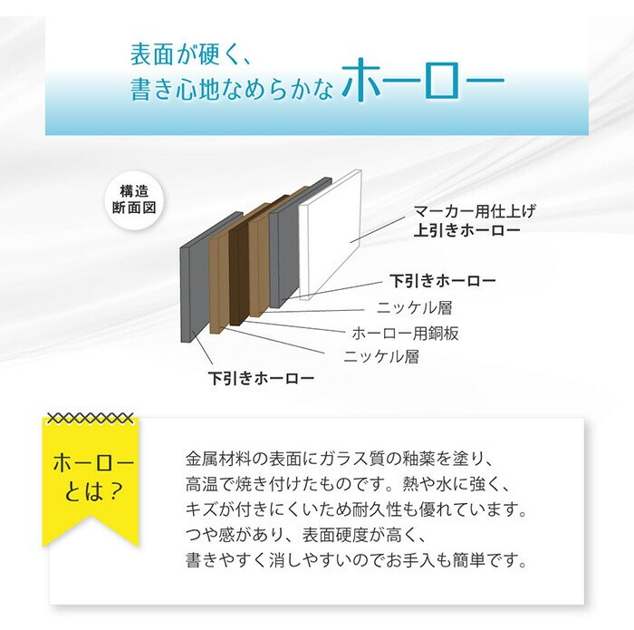 国産ホーロー使用。 表面が滑らかで、書きやすくて消しやすいホワイトボードです。