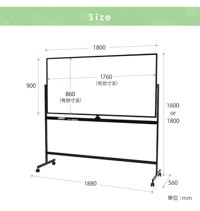 ホワイトボード脚付き ホーロー両面タイプ 幅1800 高さ900mm