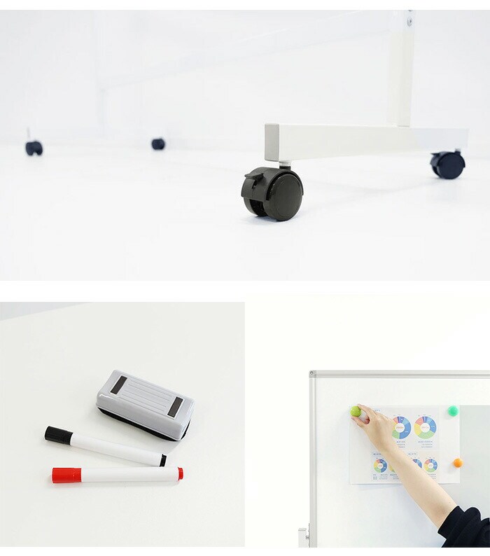 スチール、マーカー、粉受、イレーサー付き、キャスター付き、マグネット対応