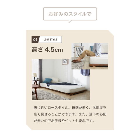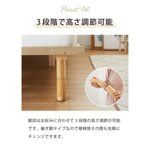 ・ベッドフレームは高さが3段階調整可能なので、お好みの高さに調整できます。