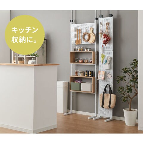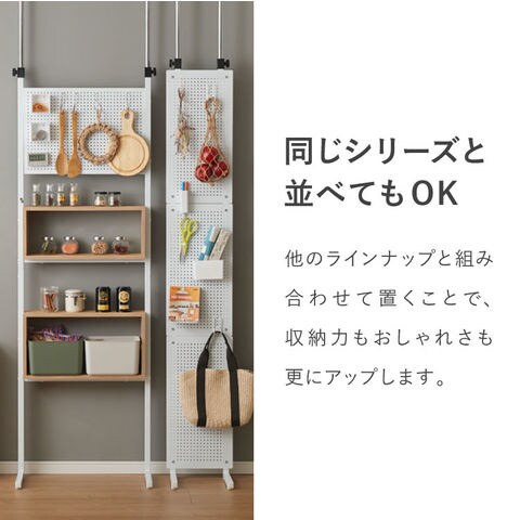 突っ張り 収納ボックス×パンチングラック 90cm 突っ張りラック ペグボード 有孔ボード パンチングボード 壁面収納 ウォールシェルフ オープンラック 突っ張り棚 本棚 間仕切り パーテーション【送料無料】