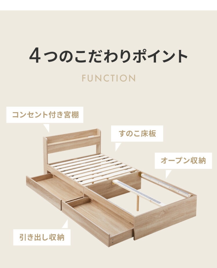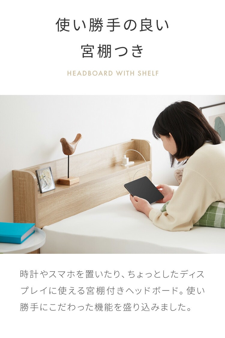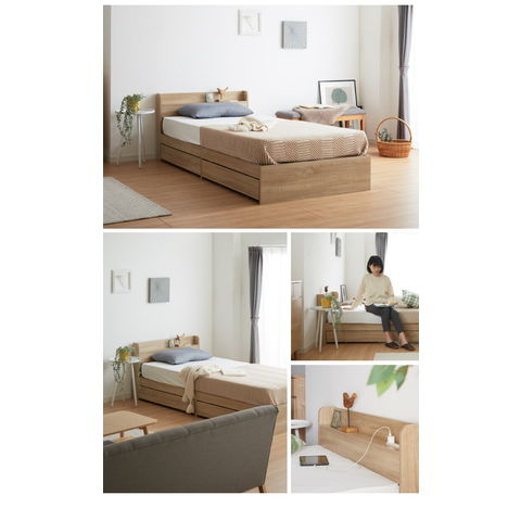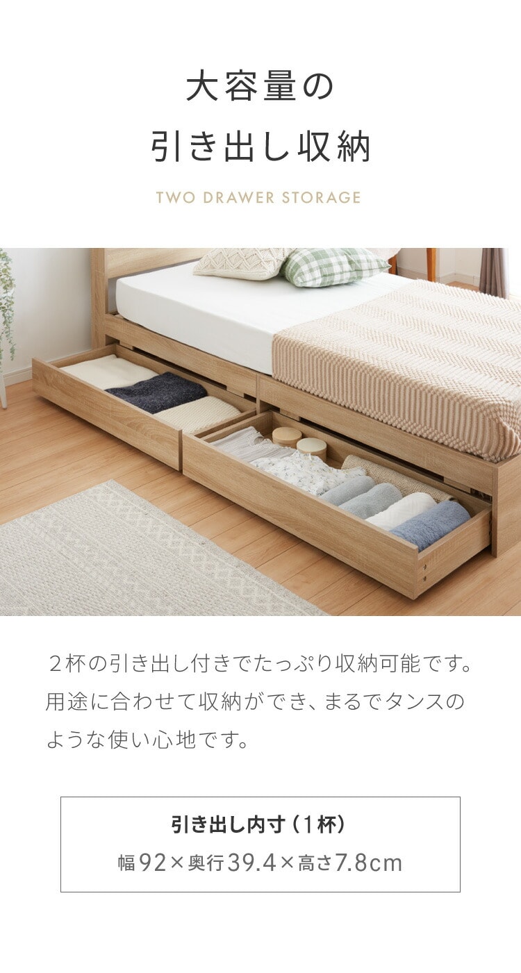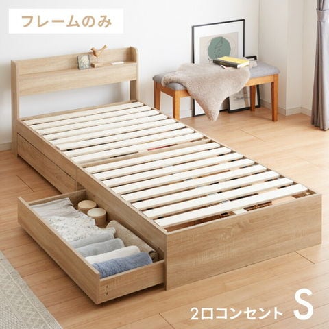 収納ベッド すのこベッド シングル ベッドフレームのみ 2口コンセント付き 2杯収納ベッド フレームのみ シングルベッド 収納付き ベッドフレーム 引き出し付き ヘッドボード 宮棚【送料無料】