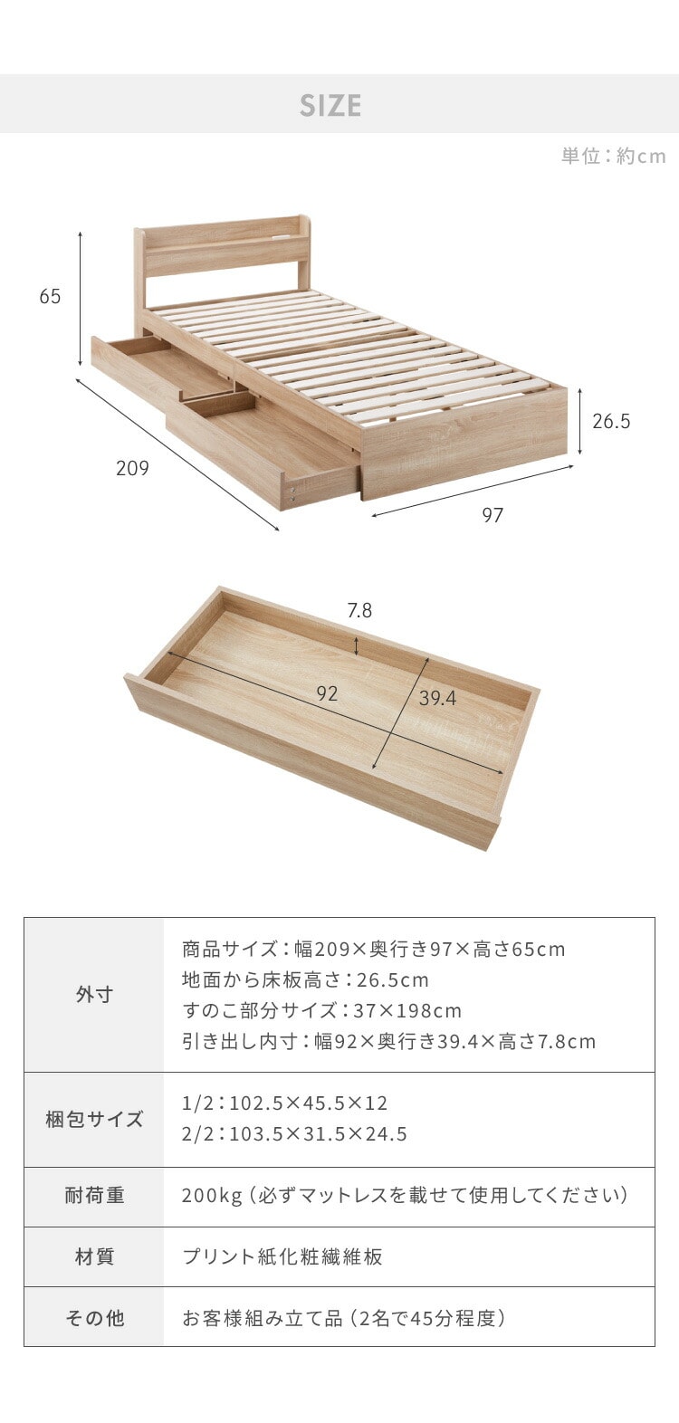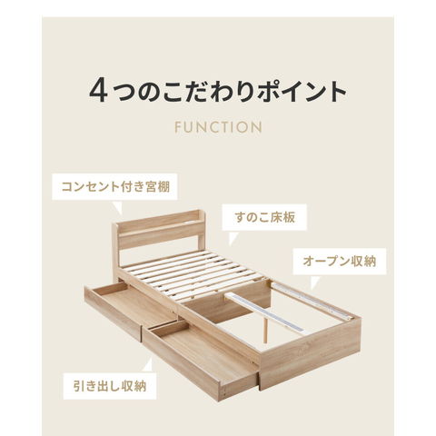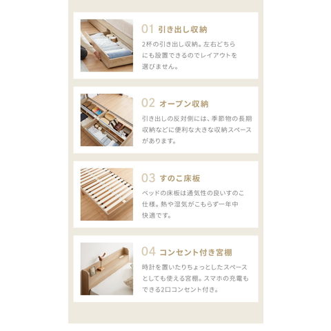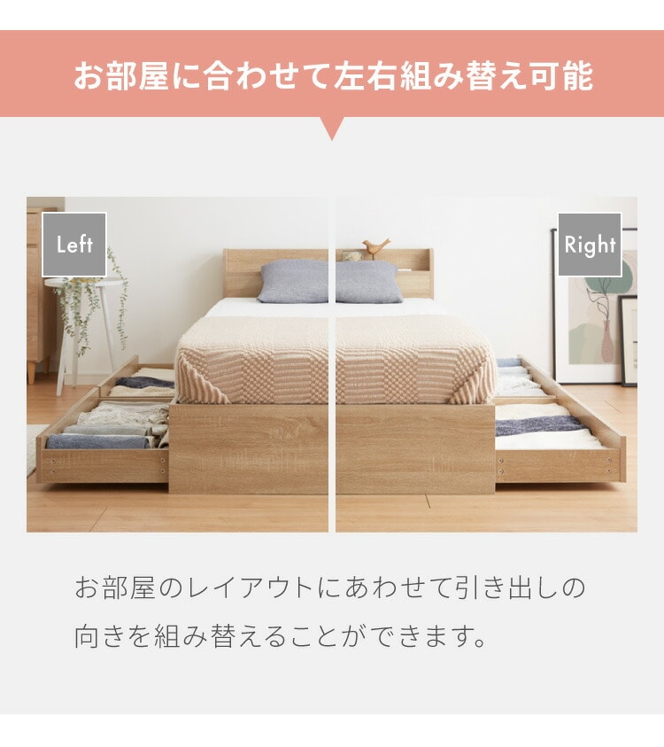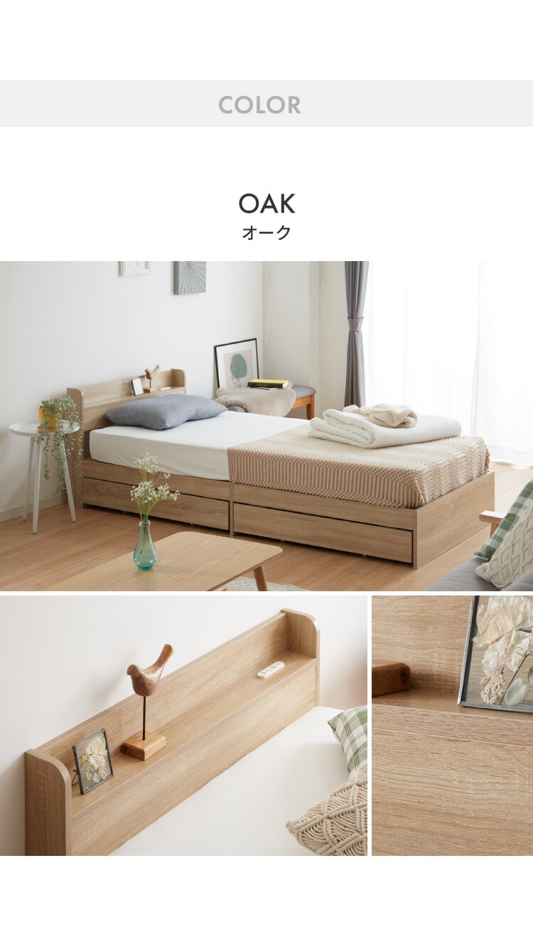 収納ベッド すのこベッド シングル ベッドフレームのみ 2口コンセント付き 2杯収納ベッド フレームのみ シングルベッド 収納付き ベッドフレーム 引き出し付き ヘッドボード 宮棚【送料無料】
