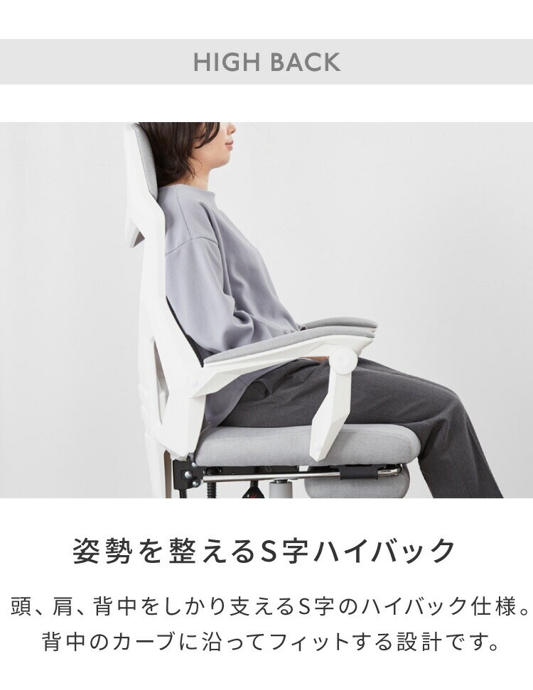 ・S字ハイバック仕様なので、頭から腰まで包み込みます。