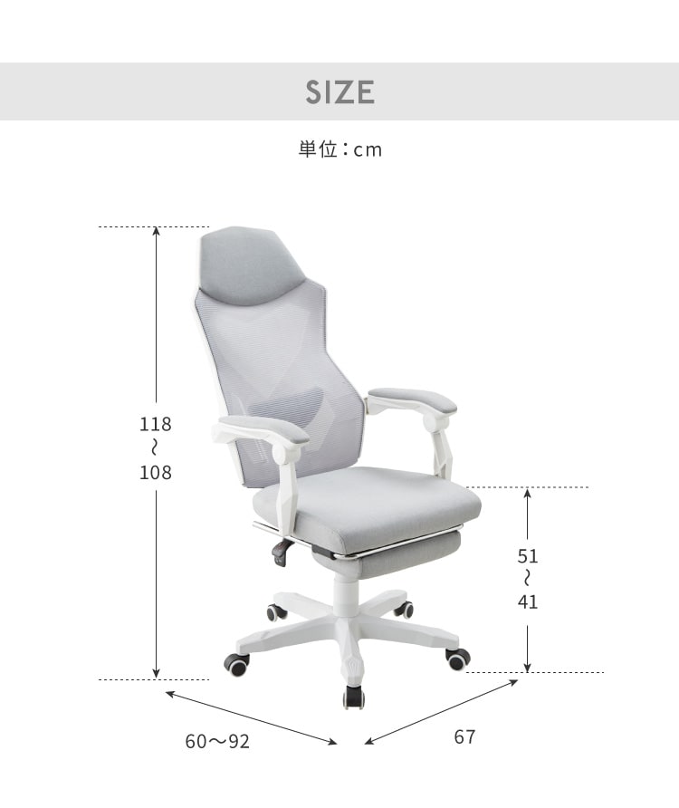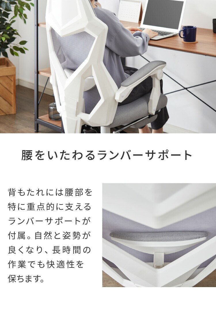 オフィスチェア オットマン付き メッシュバック 肘付き 昇降式 キャスター付き リクライニング メッシュ仕様 ゲーミングチェア ホワイト デスクチェア パソコンチェア テレワーク 在宅ワーク【送料無料】